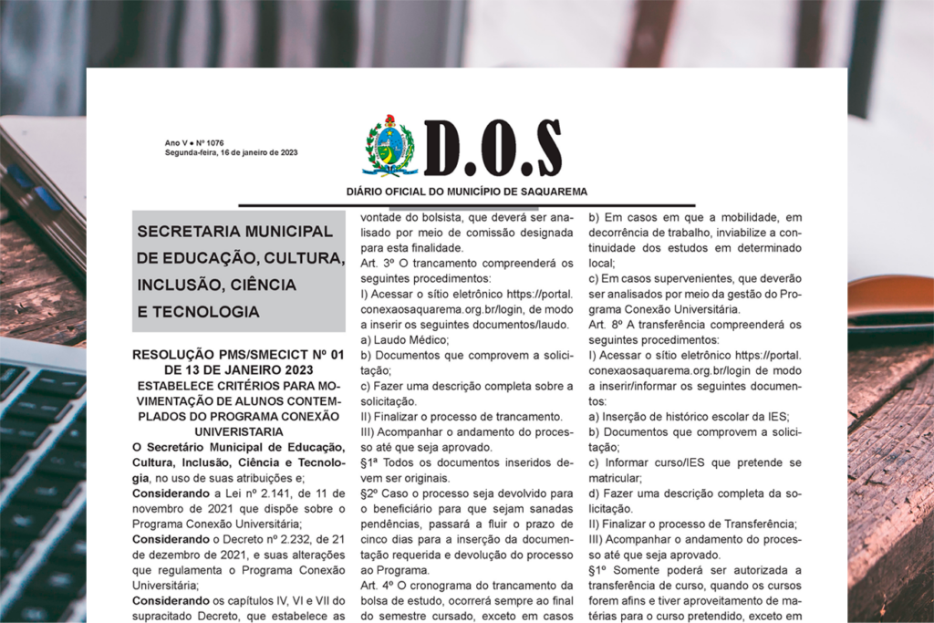 RESOLUÇÃO PMS/SMECICT Nº 01 DE 13 DE JANEIRO 2023 ESTABELECE CRITÉRIOS PARA MOVIMENTAÇÃO DE ALUNOS CONTEMPLADOS DO PROGRAMA CONEXÃO UNIVERISTARIA